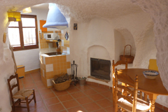 La Cueva La Luna tiene un espacio bastante amplio para la cocina y el salón, y cuenta con una habitación con armario y el baño con columna de hidromasaje y vistas de la luna por el tragaluz. Está muy bien equipada, no le falta ni un detalle. En general, todas las cuevas del conjunto son muy amplias y bien equipadas. Sus propietarias las cuidan con cariño para que no les falte ni un detalle.