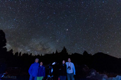 Después de muchas explicaciones y preguntas, Elena nos hizo unas fotos de recuerdo con el cielo de telón de fondo, como recuerdo de la noche tan impresionante que habíamos tenido. Tuvimos una noche tan espectacular que después de la observación oficial nos quedamos aún un rato mirando con nuestros modestos prismáticos.