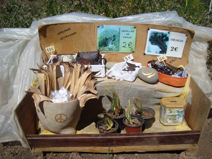 Una curiosidad: a lo largo del camino había muchos puestecitos con semillas y plantas de drago, o artículos de artesanía, pero estaban desiertos. No había nadie allí. Si te gustaba algo lo cogías y depositabas el precio en una pequeña hucha para tal efecto.