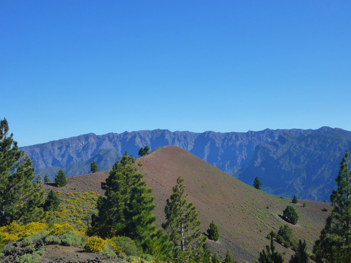 Continuamos subiendo, ya con mayor desnivel, por un camino que zigzaguea para salvar los metros que quedan de ascensión. Llegamos a la cresta divisoria de El Rodeo, que cae en una pendiente imposible hacia la Caldera. Las vistas, aunque parciales, merecen una parada y unas cuantas fotos.
